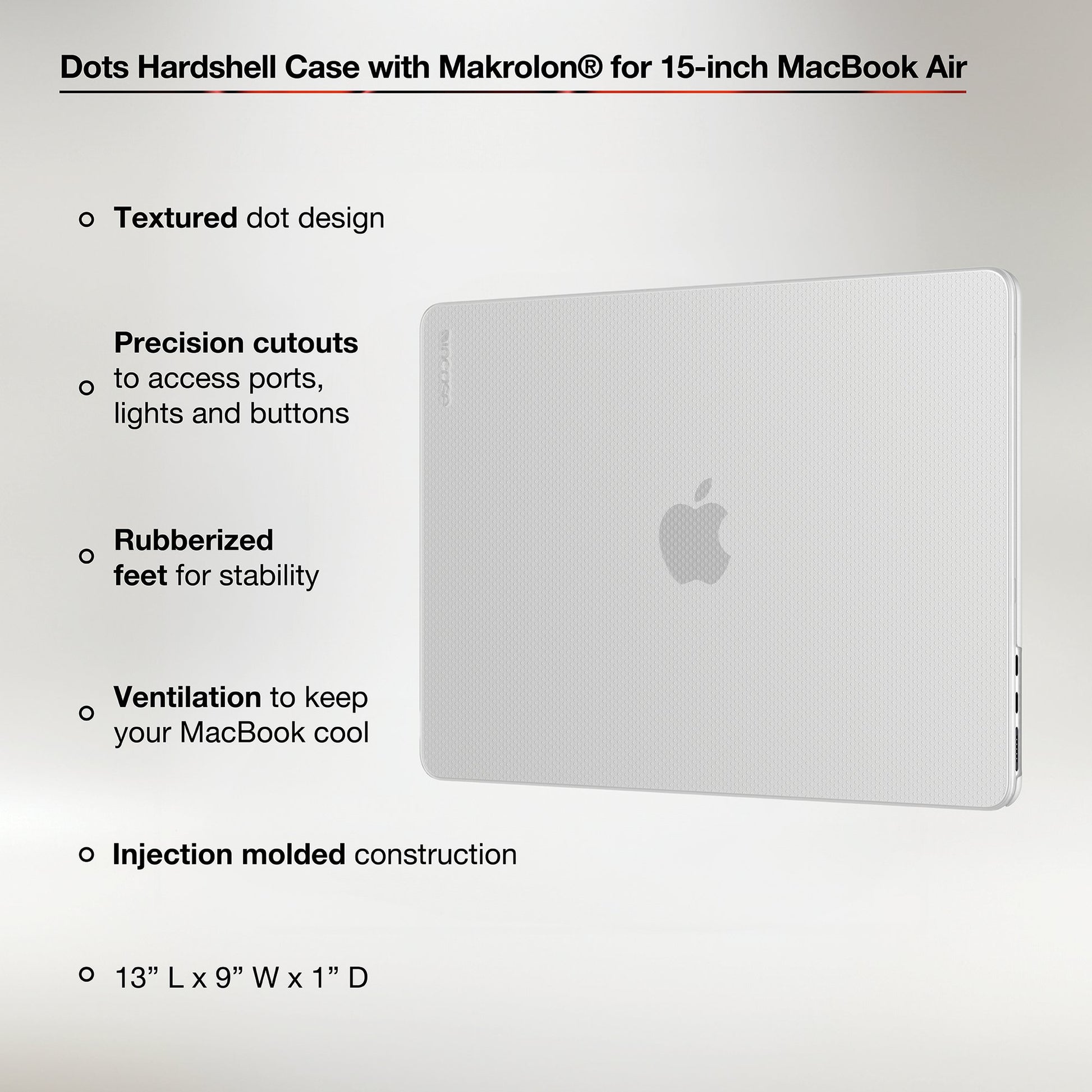 Protect and personalize your MacBook Protect and personalize your 15-inch MacBook Air. Our lightweight, form-fitting MacBook Case offers protection without sacrificing access to ports, lights and buttons. This durable MacBook cover features sophisticated styling, injection-molded construction and rubberized feet to keep your laptop cool and firmly in place.